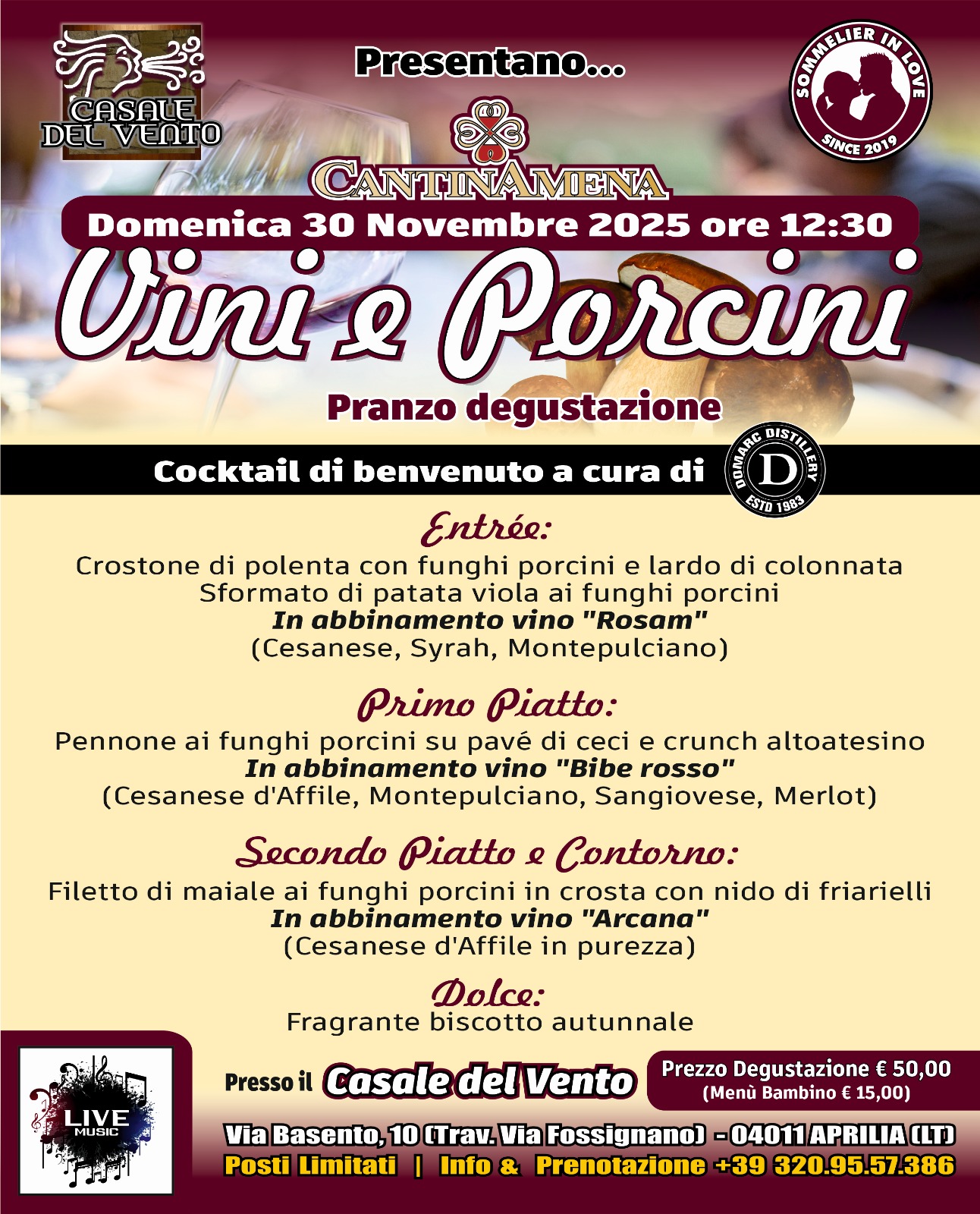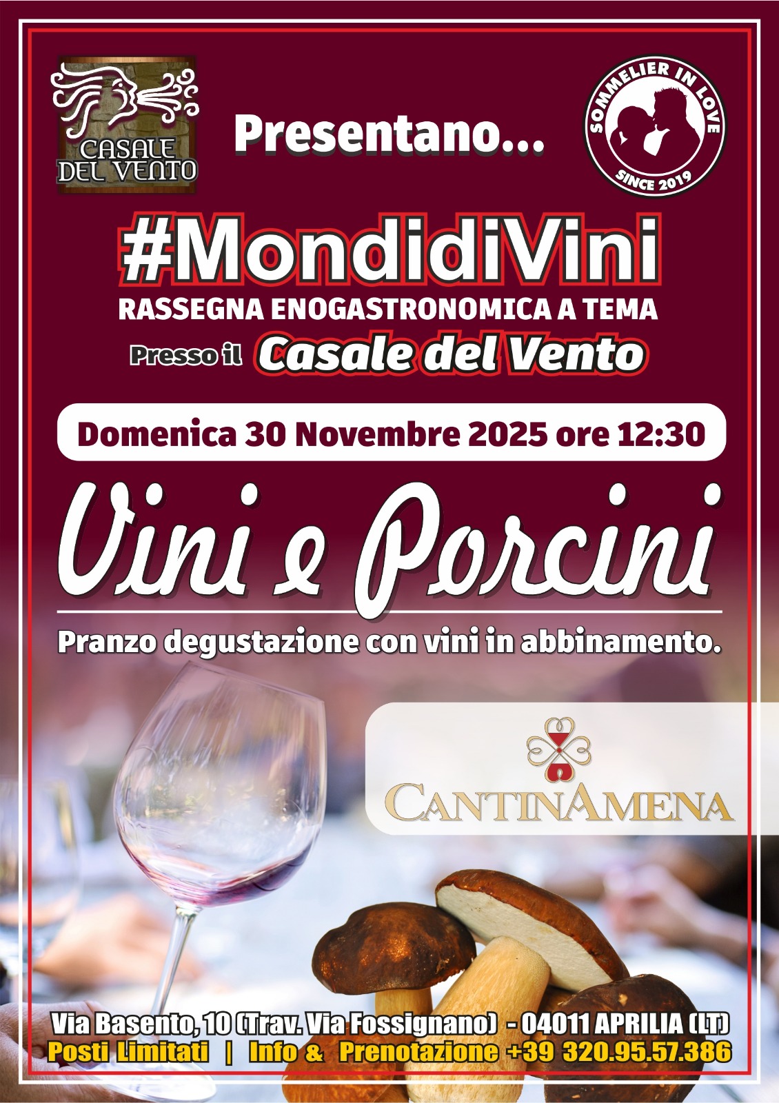 Sta arrivando un nuovo appuntamento della rassegna enogastronomica MondidiVini al Casale del Vento di Aprilia. È l'ora di "Vini e Porcini": l'appuntamento stavolta è a pranzo!Domenica 30 Novembre dal...