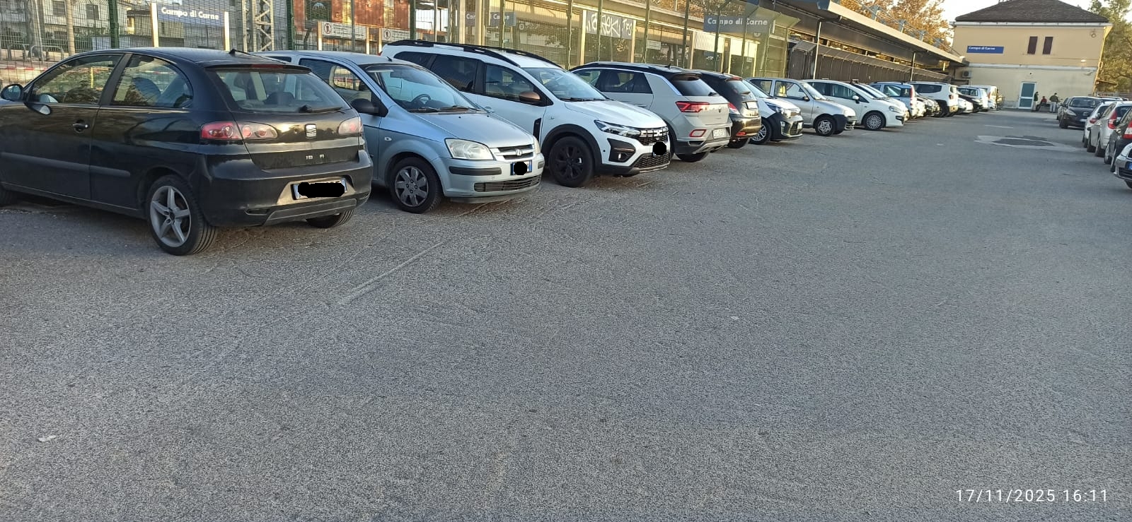 Il parcheggio della stazione di Campo di Carne presenta criticità simili agli altri: completamente privo di illuminazione e videosorveglianza, evidenzia anche una quasi totale assenza di segnaletica orizzontale per la delimitazione degli stalli; le uniche strisce ben visibili sono quelle riservate al personale RFI, vicine all’ingresso, mentre mancano quelle per i disabili. Da segnalare inoltre che il nuovo parcheggio adiacente, pronto all’inaugurazione da anni, non è mai stato aperto e versa ormai in stato di abbandono. I cittadini chiedono di valutarne finalmente l’apertura, ormai non più procrastinabile, considerata l’insufficienza degli stalli attualmente disponibili.