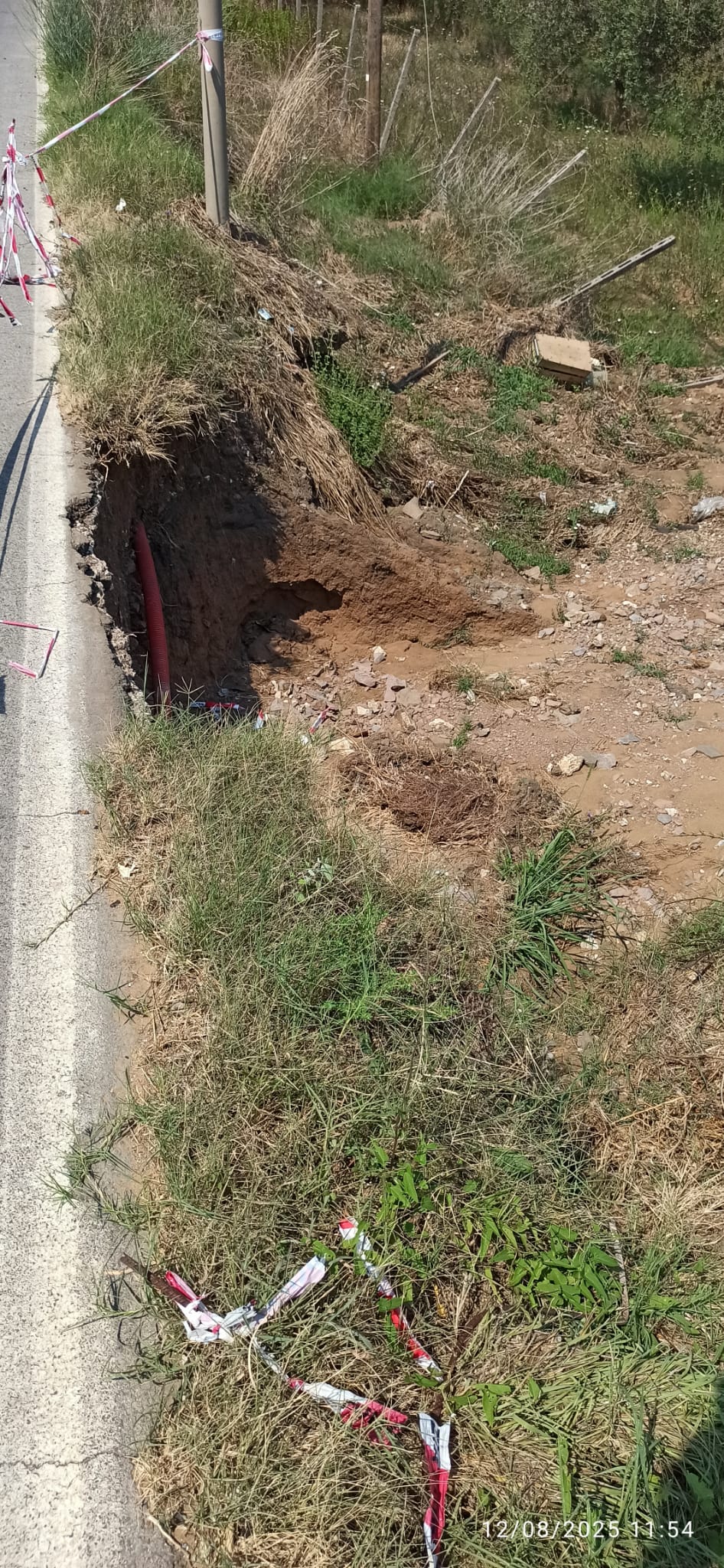 Proseguendo lungo l’arteria di collegamento tra Pontina e Nettunense, all’altezza del civico 10b ci si imbatte in un cedimento del terreno che costeggia la strada.