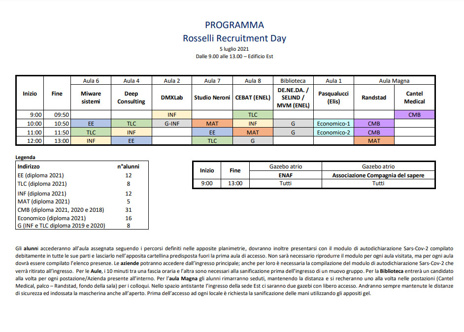Si terrà il prossimo 5 luglio dalle 9 alle 13 il “Rosselli Recruitment Day”, presso la sede centrale dell'Istituto in via Carroceto.