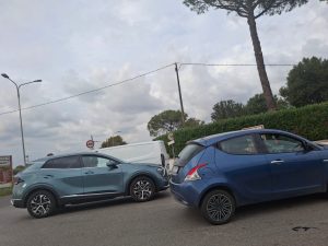 Incidente stradale su via Malcavallo all’incrocio con via Cisternense ad Aprilia: due auto si sono scontrate. Disagi al traffico