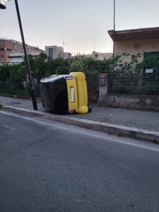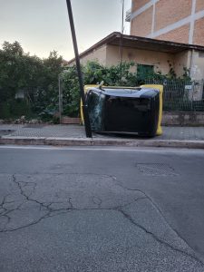 Smart fuori strada in centro ad Aprilia, finisce ribaltata sul marciapiede tra un palo della luce e l'ingresso di un'abitazione. Poteva provocare conseguenze ben più gravi l'incidente avvenuto in sera...
