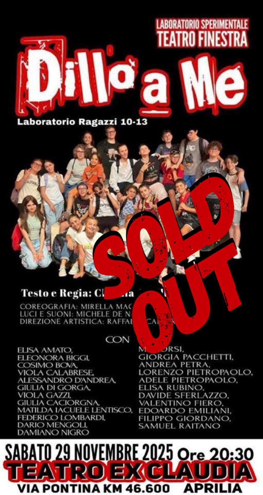 Sabato 29 e domenica 30 novembre, presso il Teatro Ex Claudia, torna in scena “DILLO A ME” uno spettacolo che parla ai giovani attraverso i giovani, si rivolge a loro affinché capiscano l’importanza di mettersi nei panni degli altri. Lo spettacolo intende raccontare il fenomeno del bullismo affinché venga arginato il più possibile.