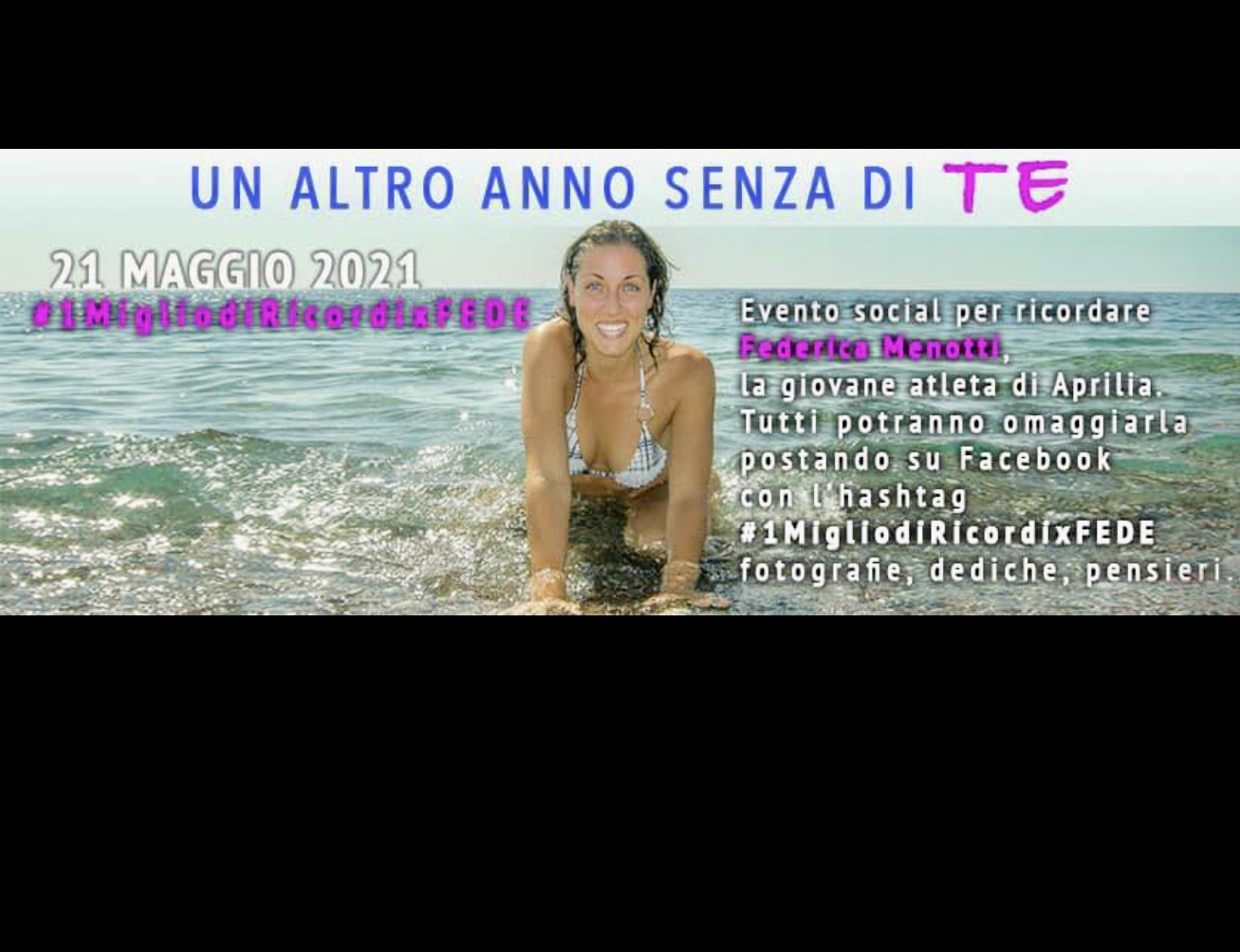 “UN ALTRO ANNO SENZA DI TE ” è la seconda iniziativa “social” che si sta promuovendo ad Aprilia in ricordo di Federica Menotti, la giovane atleta apriliana scomparsa prematuramente tre anni fa durante un allenamento di nuoto in piscina.