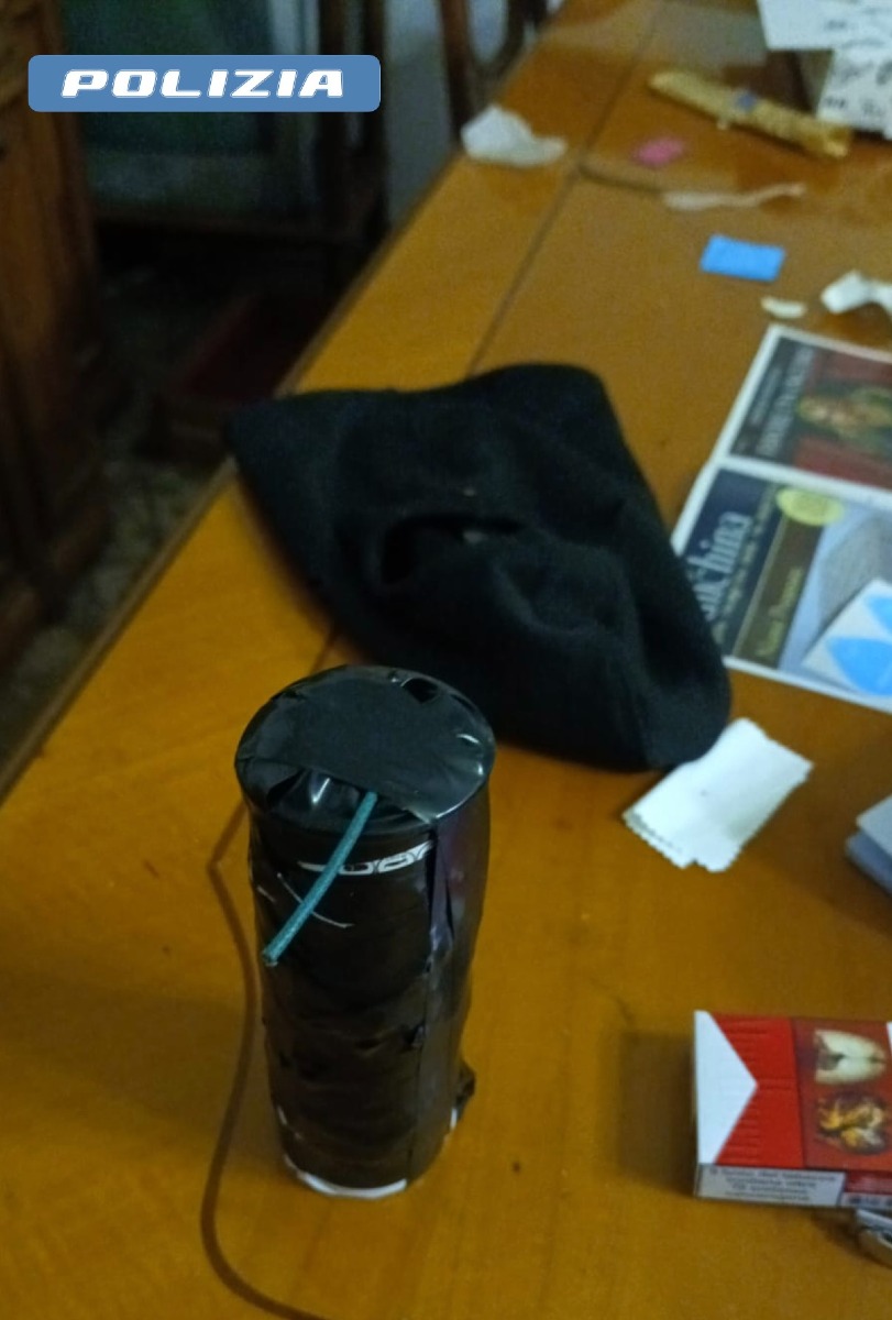All’interno dell’abitazione è stato inoltre trovato un ordigno artigianale, che ha richiesto l’intervento degli artificieri della Polizia di Stato per la messa in sicurezza.