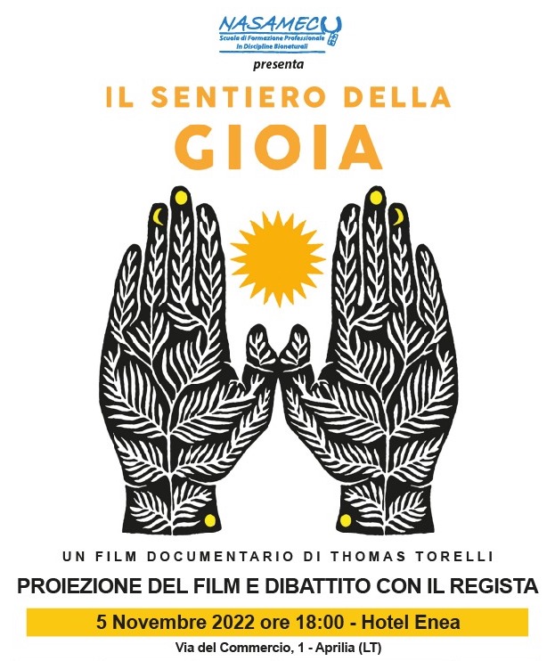 Lo scorso sabato 5 novembre, all’Hotel Enea di Aprilia, si è tenuta, con un grande successo di pubblico, la proiezione de “Il Sentiero della Gioia”, il Docufilm di Thomas Torelli, il quale ha presenziato e arricchito l’evento attraverso le sue parole ricche di energia nel dibattito finale, infondendo gioia, fiducia e speranza nel futuro.