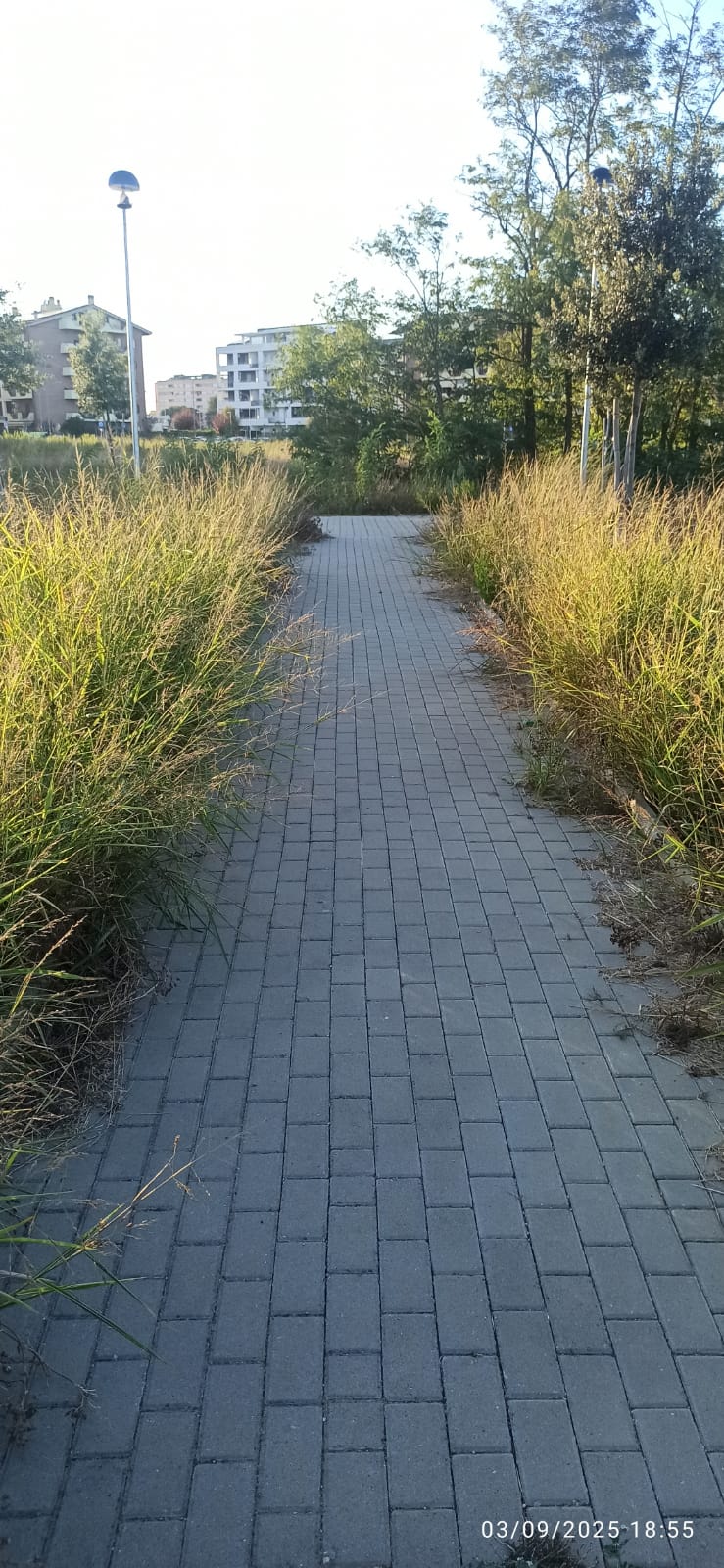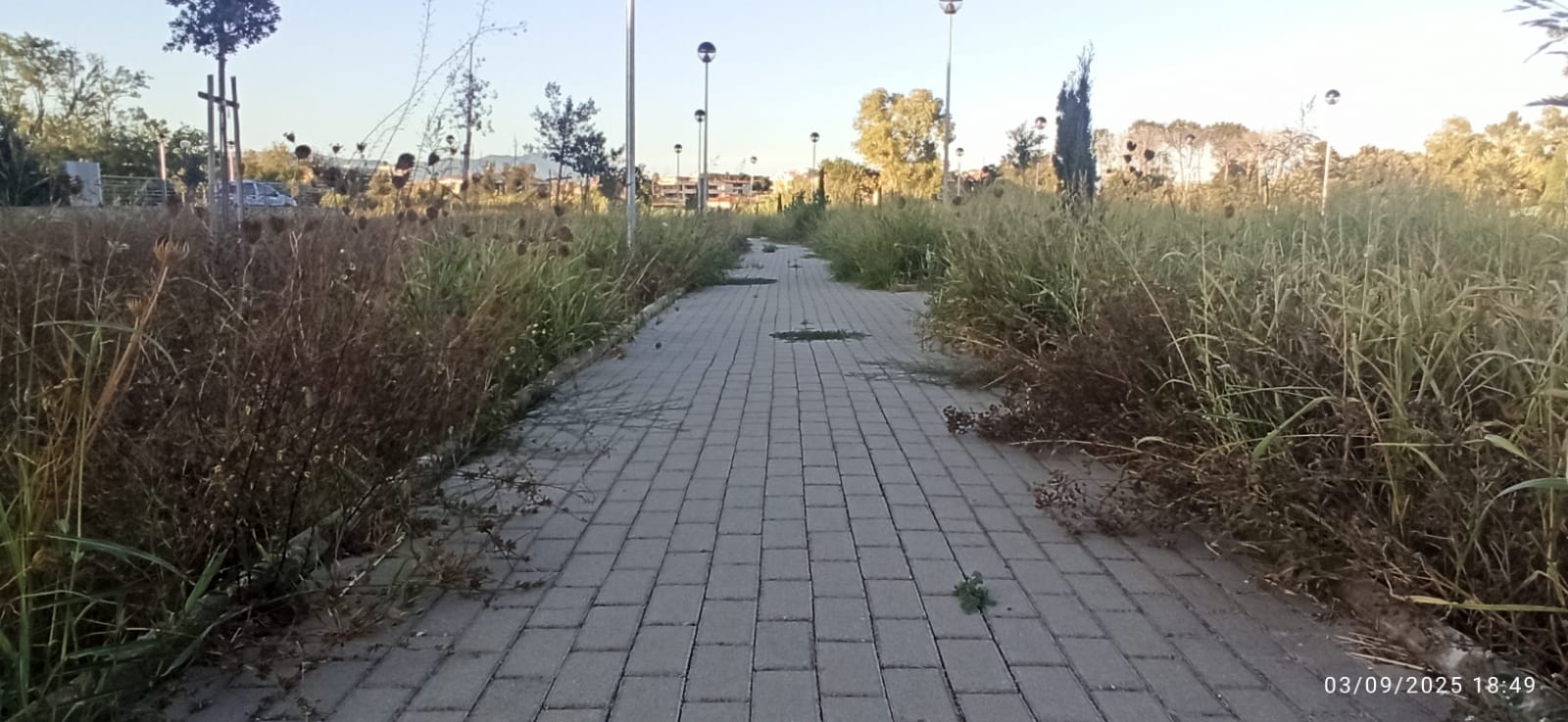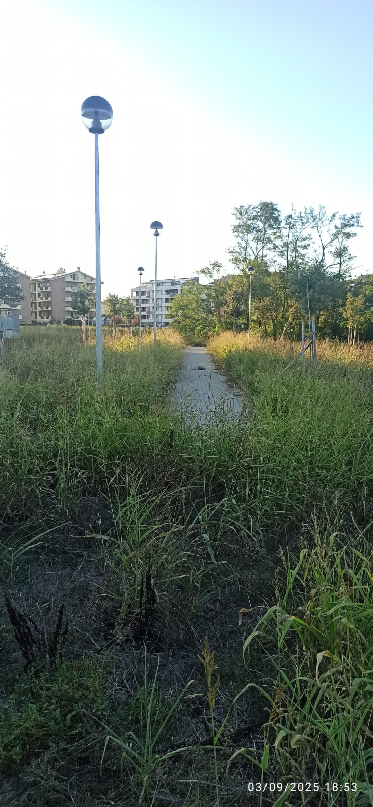 Quell’area verde è abbandonata al proprio destino e ciò è evidente non solo dalla già citata erba alta ma anche dall’impianto di illuminazione, nuovo, che non è mai stato acceso e dalle 3 aree pavimentate interne, riconoscibili solo dalle immagini satellitari poiché avvolte dalla vegetazione, la cui funzione non sembra di immediata comprensione non essendovi presente alcun tipo di arredo urbano.