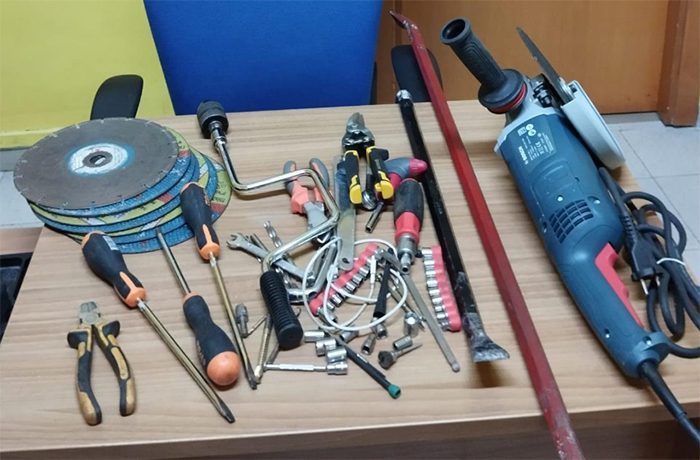 Tra l’attrezzatura posta sotto sequestro, piedi di porco, corde, frullini e cesoie.
