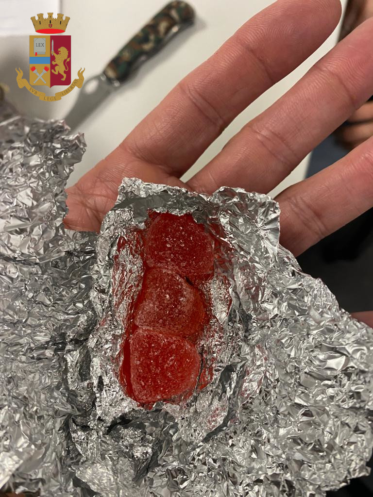 La gravità di quanto rinvenuto va valutata anche in considerazione del fatto che queste caramelle,  rese invitanti proprio dal colore acceso e dallo zucchero di cui erano cosparse, potrebbero indurre ad un consumo inconsapevole ed è alto il rischio che possano finire anche nella disponibilità di minori. La sostanza stupefacente è stata pertanto sequestrata e l’arresto convalidato con la detenzione in carcere.