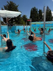 Una serie di esercizi accompagnati dalle note dei più grandi successi dell'estate che riusciranno a scandire i vari momenti e creare la giusta atmosfera. Le lezioni di gruppo potranno essere praticate da grandi e piccoli in totale armonia e, soprattutto, restando in acqua...la condizione ideale per combattere le temperature roventi.