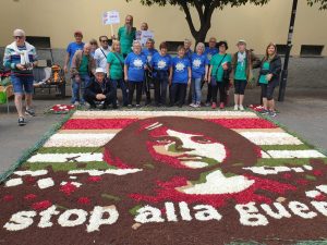 Nelle ultime settimane, l'Associazione Infiorata Città di Aprilia è stata presente in molte città italiane, tra cui nei pressi di Torino, ad Agliè nel Castello dei principi di Savoia, a Milano nell’ambito contesto della fiera di Orticola e nei pressi di Bologna, a Baricella, andando a formare le scolaresche del posto. Lo scorso fine settimana, abbiamo avuto l'onore di partecipare alla Rassegna Internazionale Infiorate Artistiche di Pietraligure, una delle più importantia livello europeo sia per il numero di partecipanti e sia per le dimensioni delle opere realizzate. Qui, abbiamo realizzato un tappeto dal forte messaggio "Stop alla guerra", che ha ricevuto grande apprezzamento e impatto.