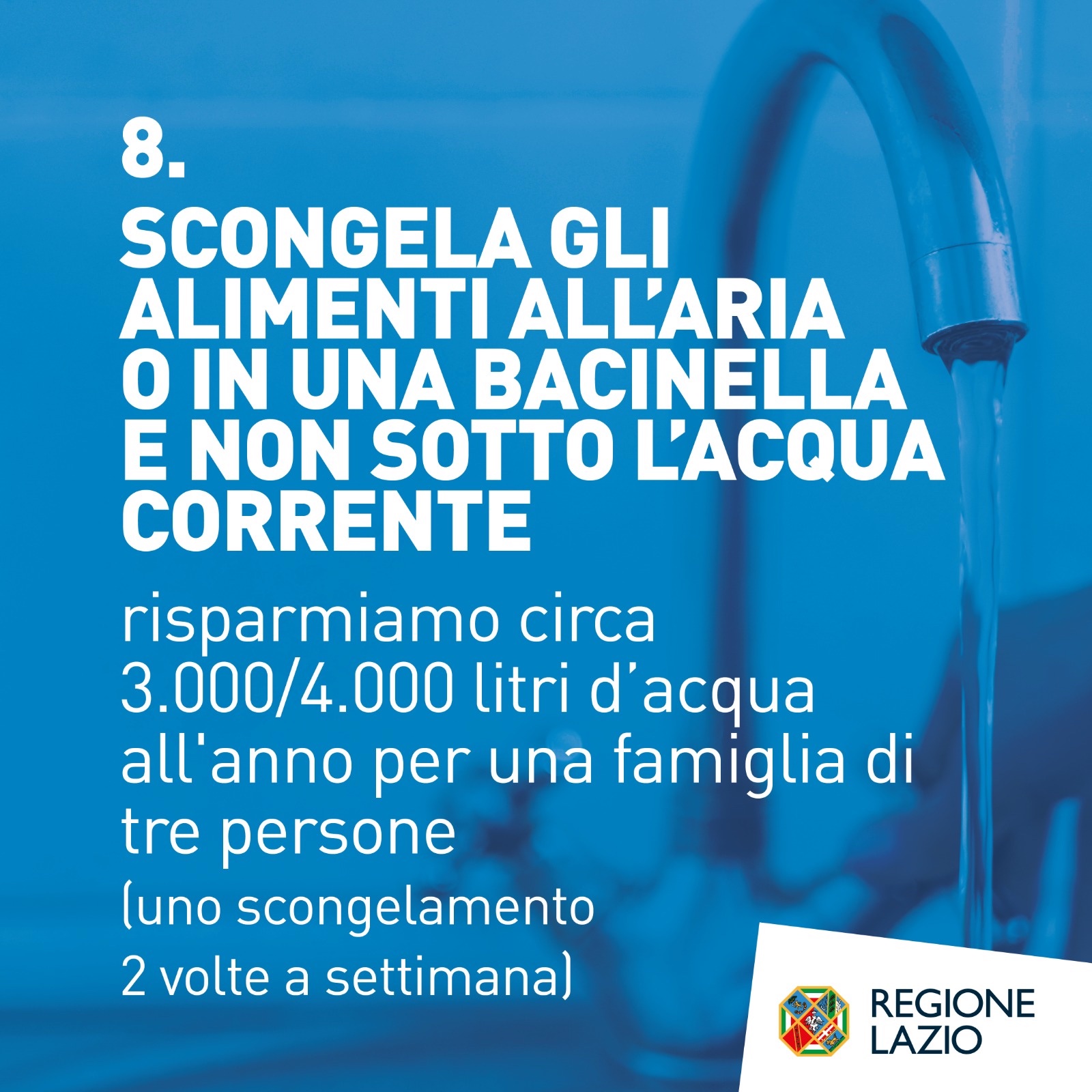 “Oggi, soprattutto a causa dell’emergenza climatica, - spiega la Regione - stiamo assistendo a grandi fiumi che sembrano prosciugarsi e una crisi idrica preoccupante in tutti i settori. Per questa ragione è stato declinato il decalogo di comportamenti responsabili, frutto della collaborazione con Acea Gruppo, per sensibilizzare i cittadini all’utilizzo consapevole e corretto dell'acqua: questa risorsa vitale.