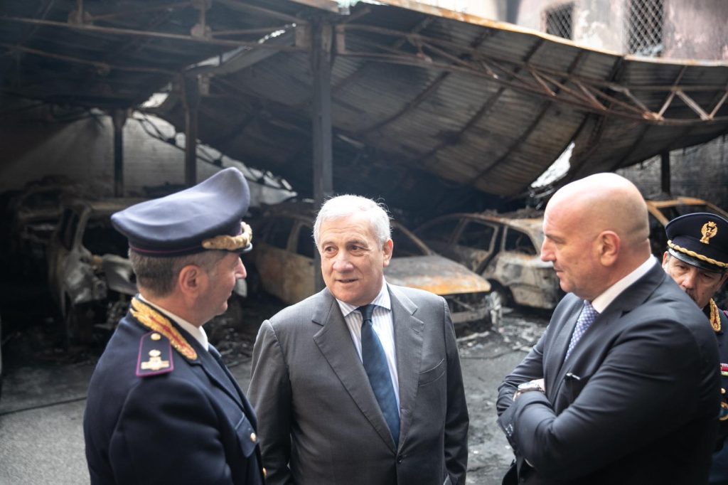 Atto incendiario al Commissariato di Albano, la visita del Ministro Tajani