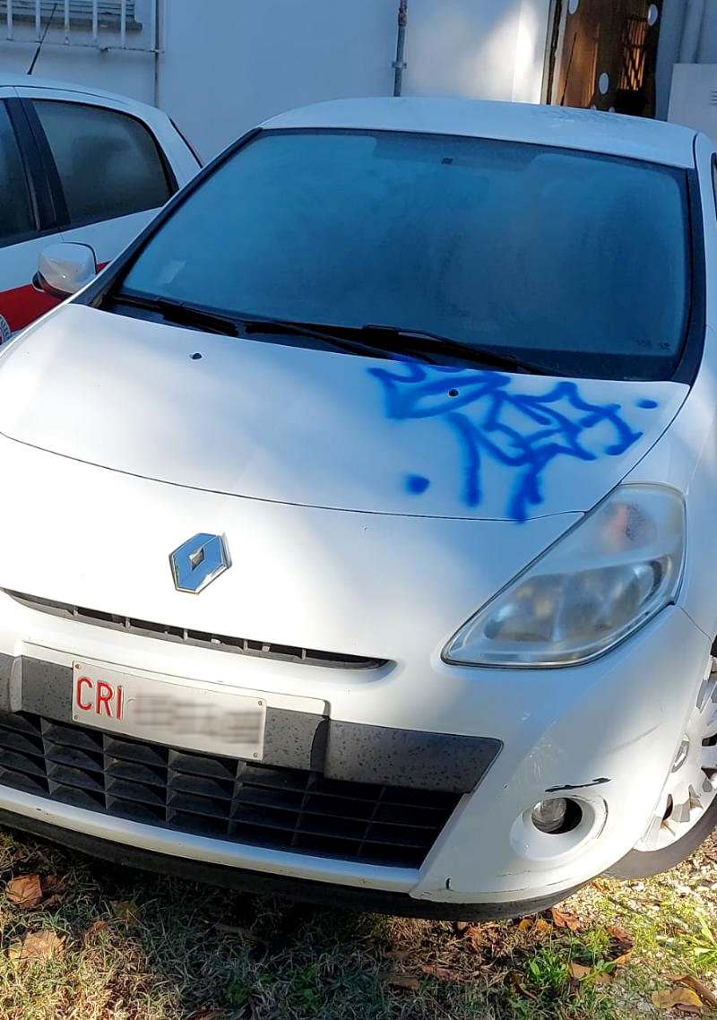 La prima auto imbrattata, con all’interno indumenti e materiali facilmente riconducibili alla Croce Rossa, è di una docente proveniente da Velletri, l’altra appartiene all’associazione, riconoscibile dalla targa C.R.I., ed era regolarmente parcheggiata negli spazi riservati ai mezzi della Croce Rossa.