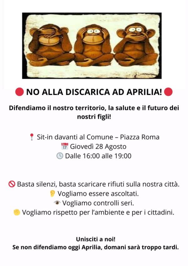 No alla discarica ad Aprilia: sit-in oggi in Piazza Roma. Chiesto un incontro urgente con le Commissarie.