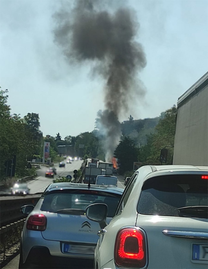L’incendio - divampato a pochi metri da un distributore d benzina - è già stato domato. Le due persone che si trovavano a bordo sono riuscite a mettersi in salvo senza conseguenze. Ora sono in corso le operazioni di recupero del mezzo.