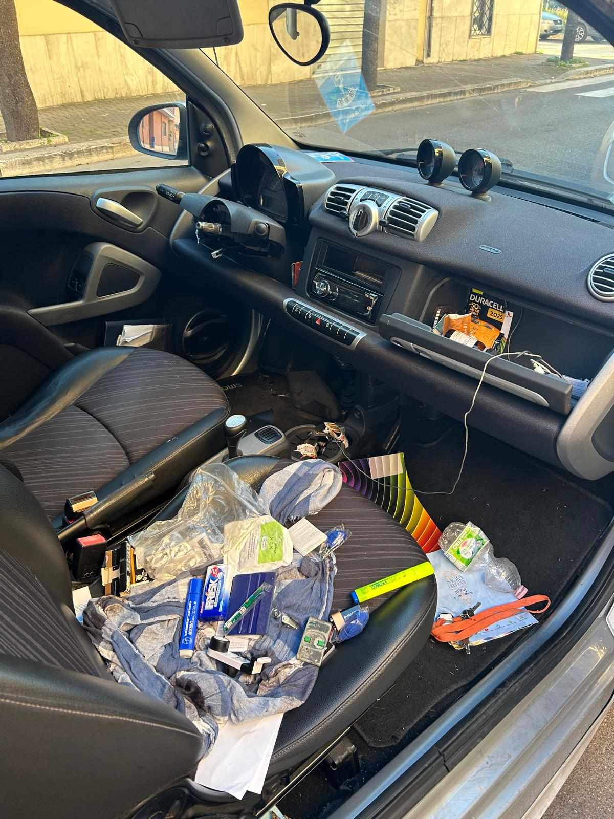 Alla stessa Smart, parcheggiata sempre in via delle Margherite, lo scorso mese di luglio erano state portate via anche le ruote posteriori.