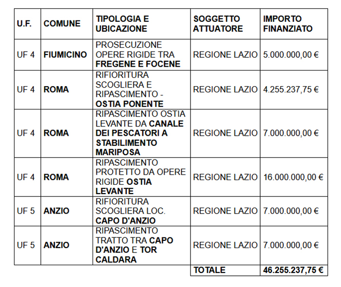 Le opere oggetto del Piano sono quelle individuate nel documento di programmazione per il periodo 2025-2028 “Interventi a difesa della costa del Lazio”, redatto partendo dal documento “Analisi di supporto al Piano della Costa della Regione Lazio”, prodotto nell’ambito di un Accordo con il Dipartimento di Ingegneria dell’Università degli Studi “Roma Tre”, a cura del professor Leopoldo Franco.