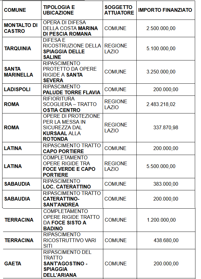 Avviato il piano per la difesa integrata delle coste del Lazio. Una pianificazione da circa 90 milioni di euro.