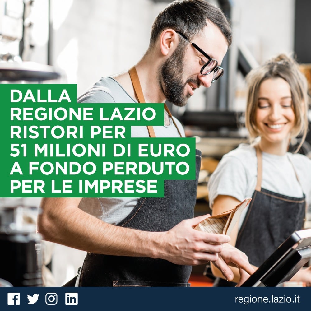 La partecipazione al bando può avvenire solo per via telematica all’indirizzo internet https://www.regione.lazio.it/ristorolazioirap/ e la domanda potrà essere firmata digitalmente o in modalità olografa. L’avviso ha una dotazione di 51 milioni di euro e ha come scopo quello di sostenere la liquidità di Mpmi e liberi professionisti con partita Iva del Lazio appartenenti a 283 distinti codici Ateco).