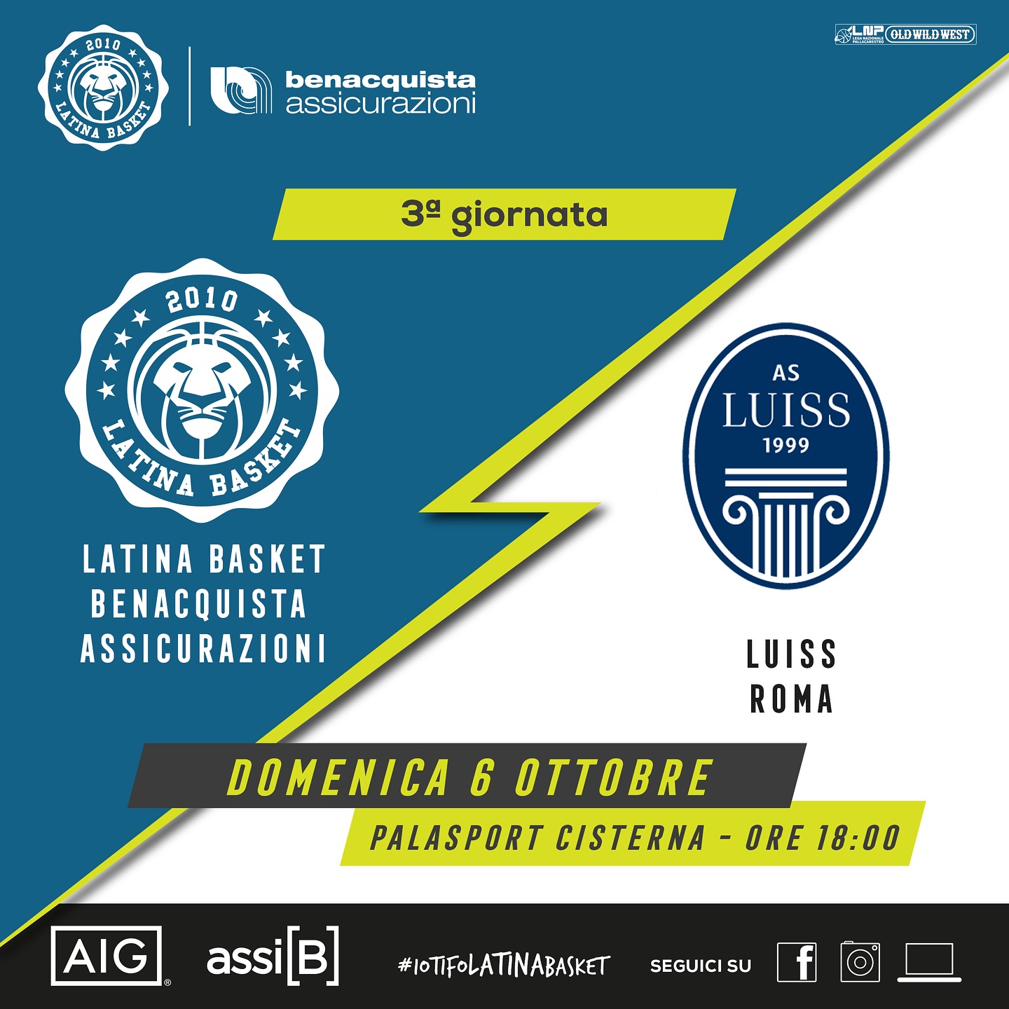 Basket serie B Nazionale, il Latina nella terza giornata della regular season riceve la Luiss Roma.