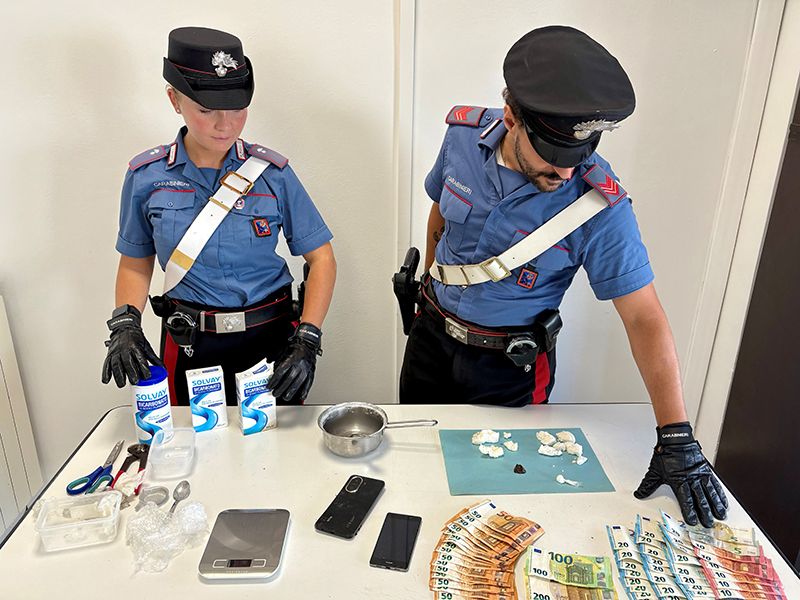 La successiva perquisizione dell'abitazione ha permesso di rinvenire e sequestrare 126 grammi di crack, 3 grammi di hashish, 0,8 grammi di cocaina, materiale per il confezionamento delle dosi e 1.685 euro in contanti, provento dell'attività illecita.