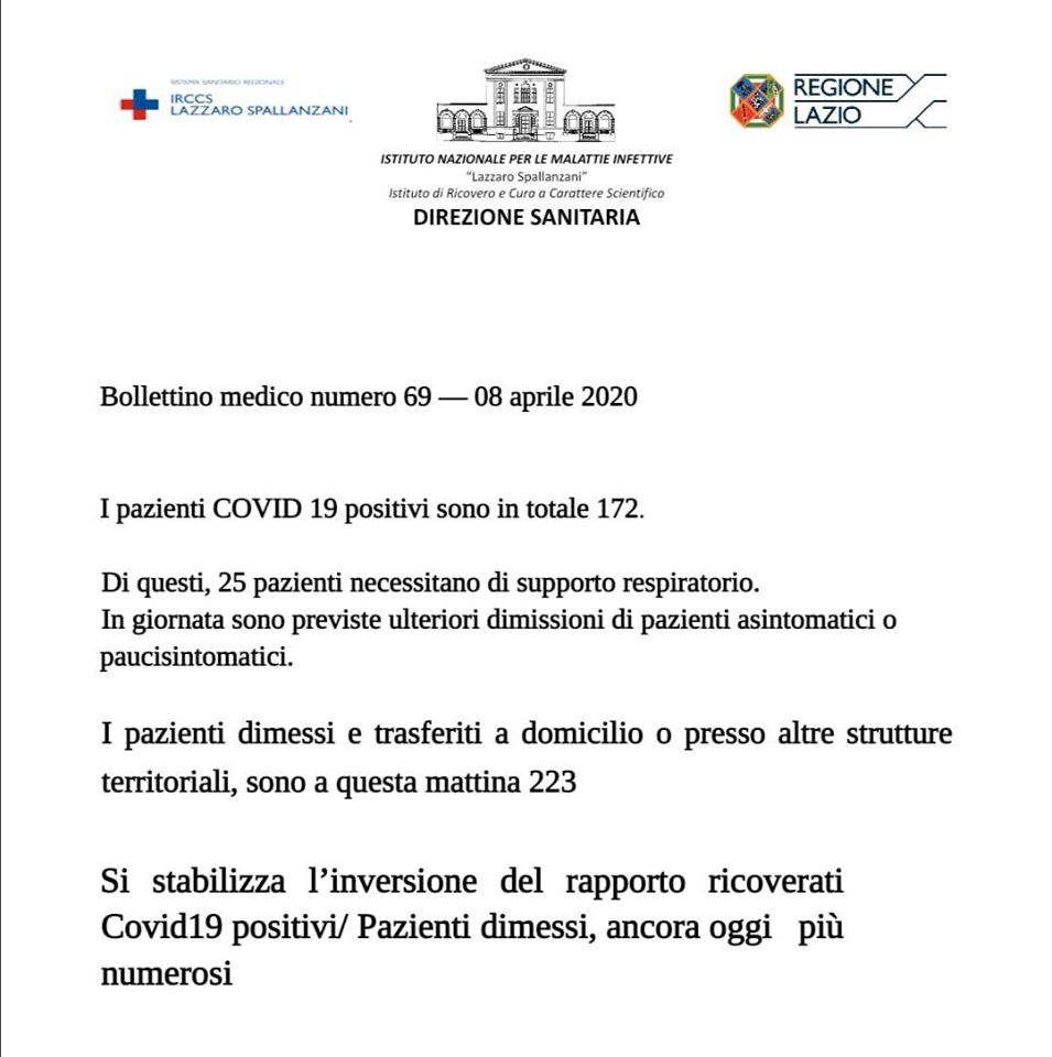 Diramato il bollettino medico odierno dello Spallanzani: i ricoverati Covid-19 oggi scendono a 172. Si stabilizza l’inversione del rapporto ricoverati-dimessi. Ecco tutti i dettagli: