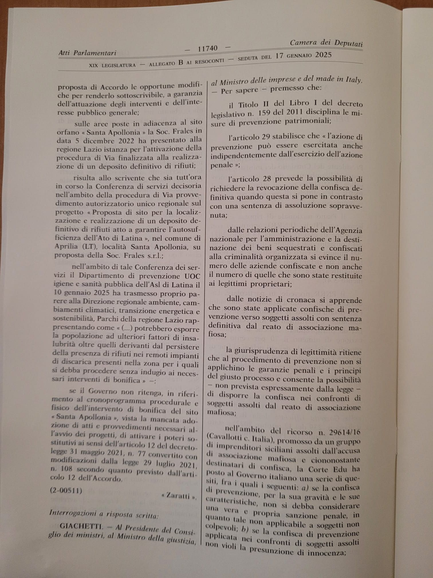 Bonifica dell'ex discarica a Sant’Apollonia, ad Aprilia. Presentata un’interrogazione parlamentare da parte del deputato di Alleanza Verdi e Sinistra, Filiberto Zaratti, intervenuto ieri alla conferen...