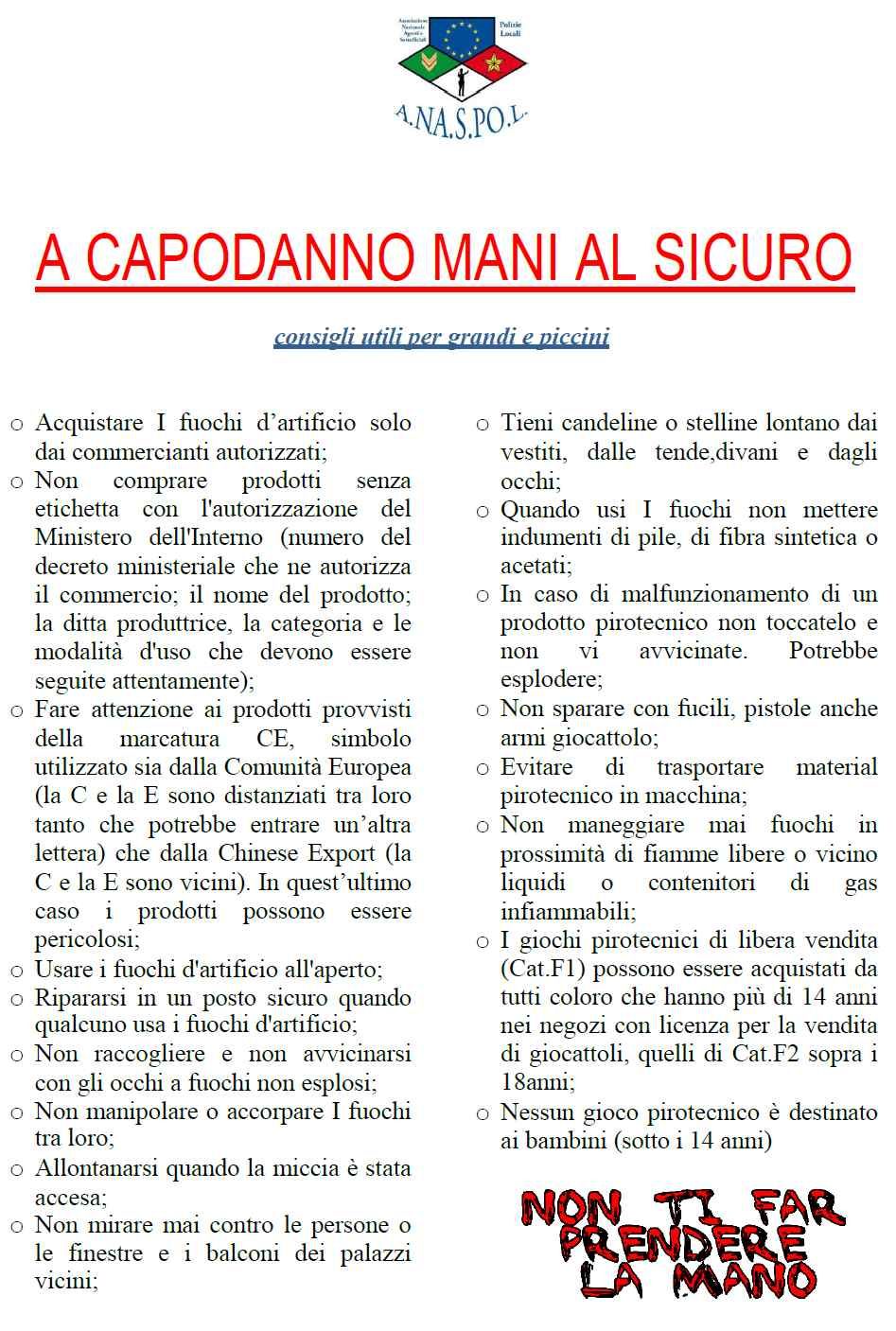 CONSIGLI UTILI SULL’USO DEI BOTTI DI CAPODANNO