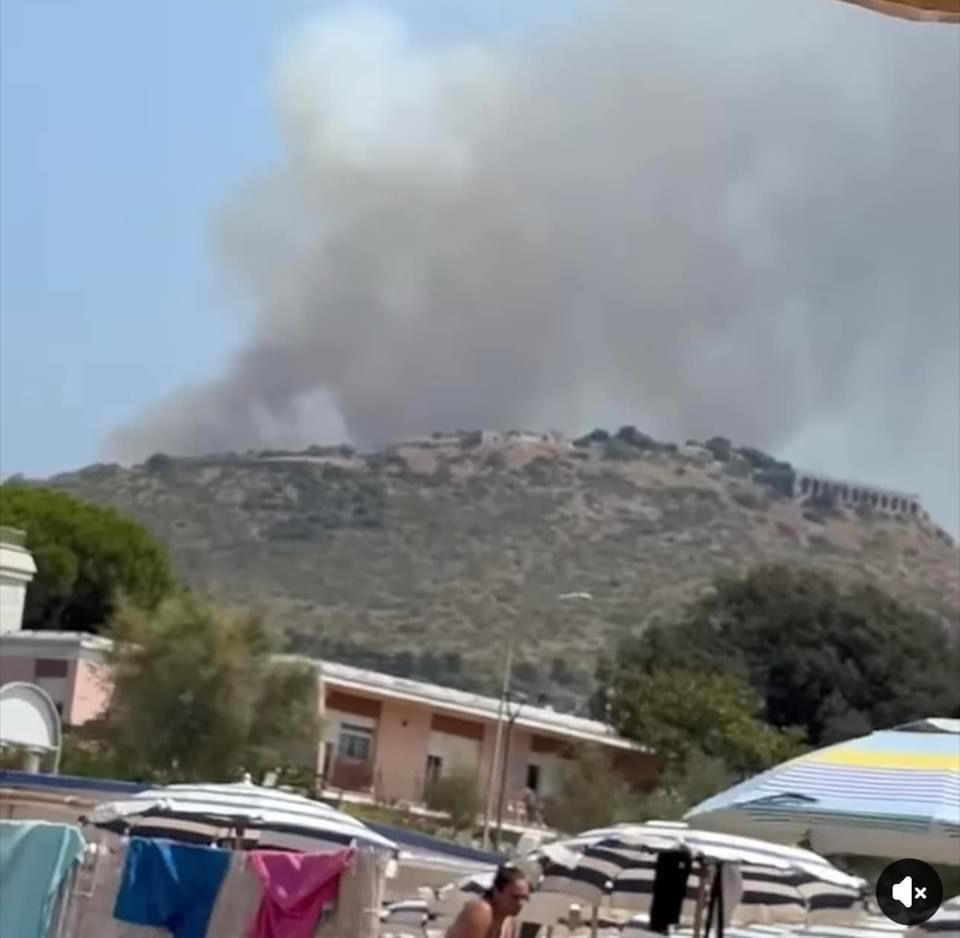 Grosso incendio a Terracina nella zona sud, sulla via Flacca. Le fiamme stanno bruciando Monte Sant'Angelo sul versante sud. Sul posto i vigili del fuoco in azione due elicotteri e un canadair. La sit...