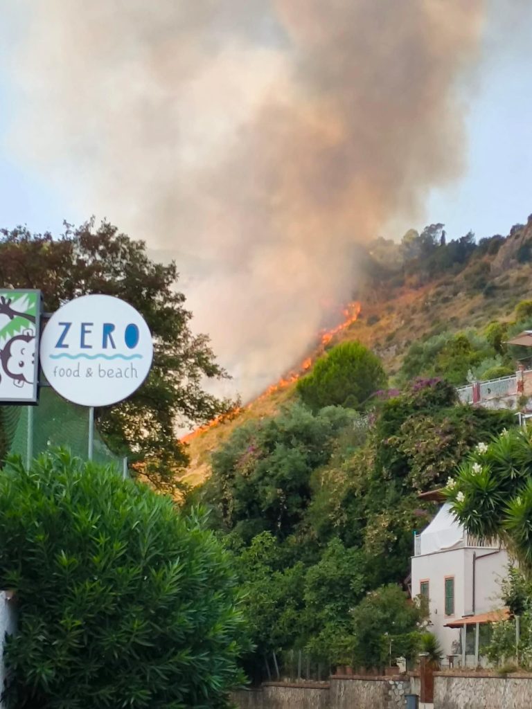 Grosso incendio a Terracina nella zona sud, sulla via Flacca. Le fiamme stanno bruciando Monte Sant'Angelo sul versante sud. Sul posto i vigili del fuoco in azione due elicotteri e un canadair. La situazione è molto delicata. (foto da Fb)