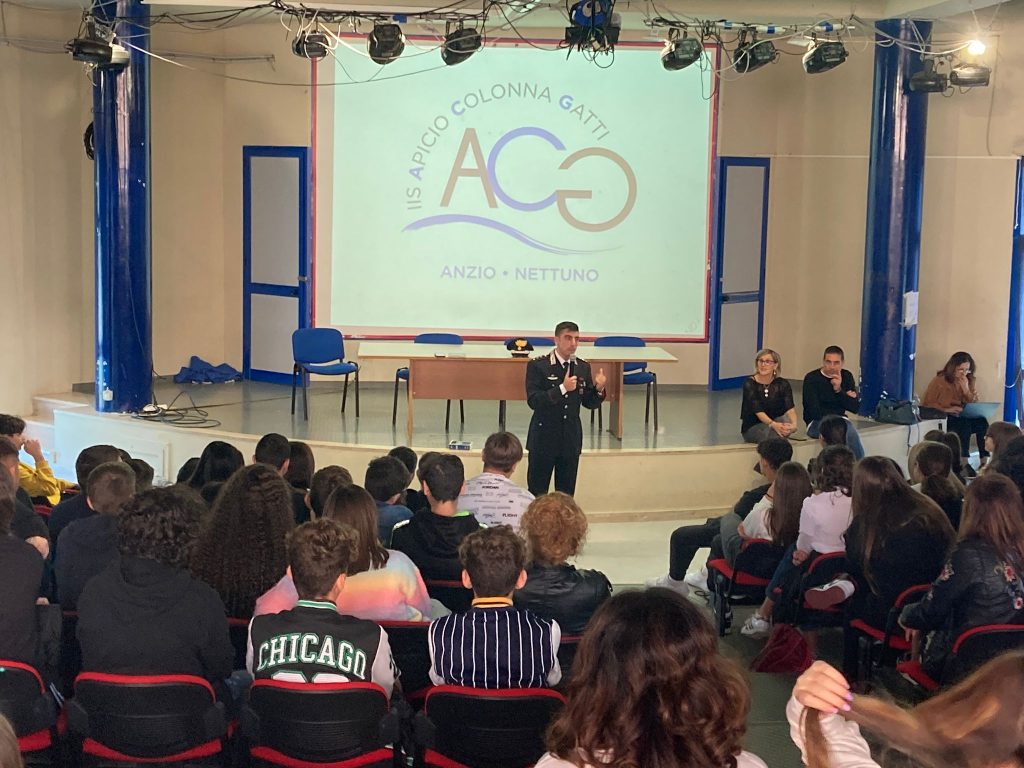 I Carabinieri della Compagnia di Anzio hanno tenuto un incontro presso l’auditorium dell’istituto scolastico Apicio – Colonna - Gatti, rientrante nel progetto “Bullismo ON/OFF” organizzato e coordinato dai professori.