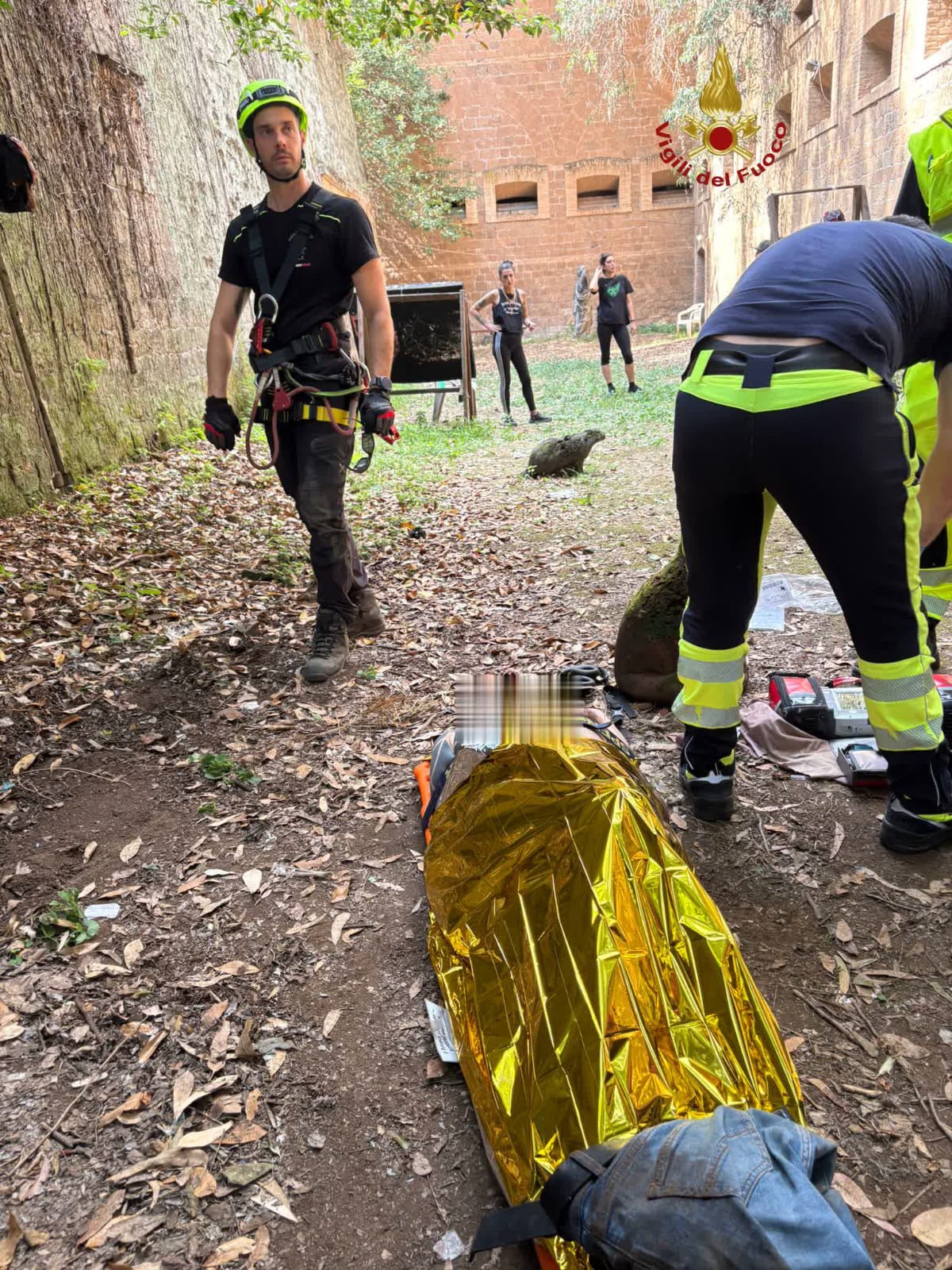 I soccorritori VF, durante le operazioni di ricerca dell’animale individuavano una persona (uomo) caduta già dal giorno prima all’interno del fossato del Forte.