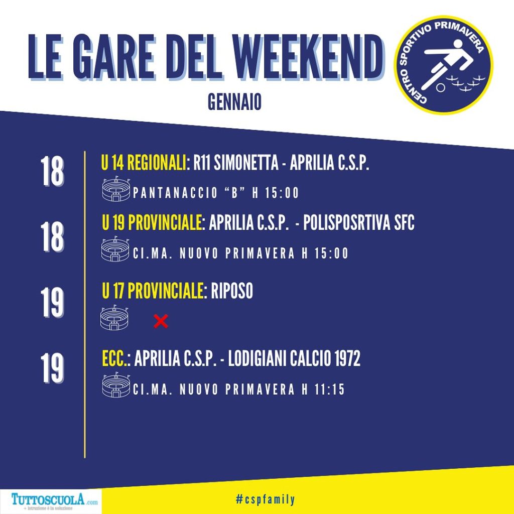 Ecco il programma gare degli atleti del Csp Aprilia: