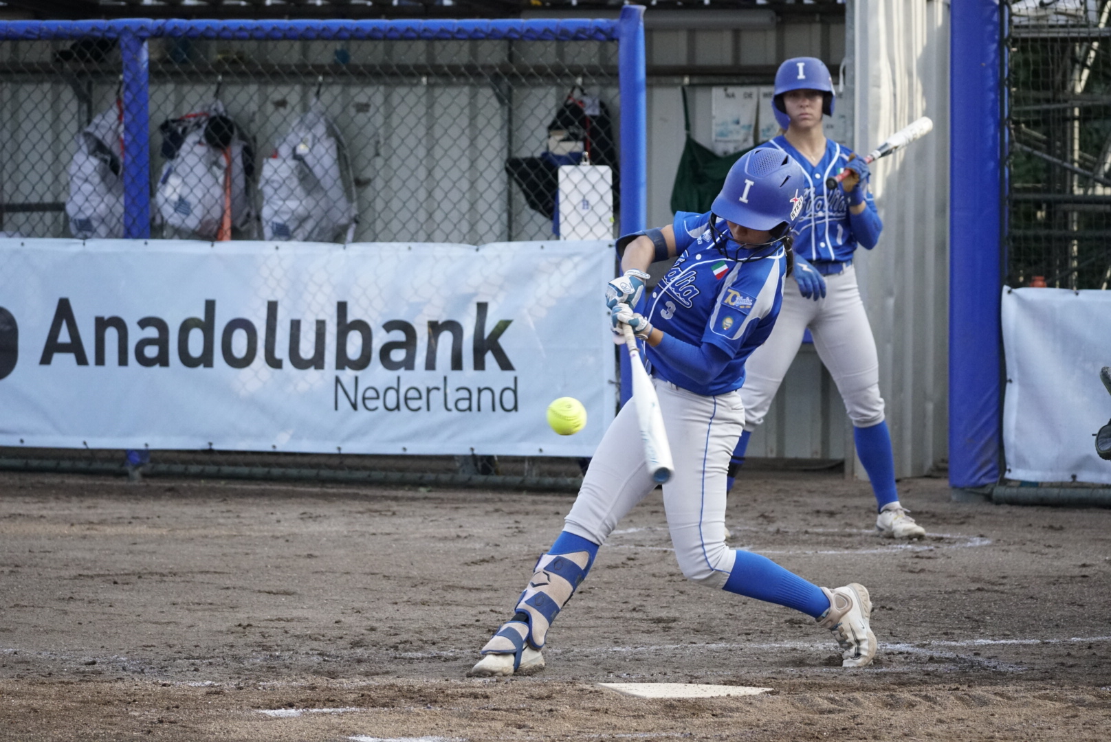 Nella seconda giornata del Campionato Europeo di Softball Élite l’Italia si mantiene imbattuta grazie ai successi per 5-3 e 7-0 al quinto inning rispettivamente contro Israele e Grecia, mentre la Gran Bretagna – vincitrice per 8-1 al sesto inning contro la Grecia, e per 4-3 contro Israele – torna in corsa per un posto nel Super Round. Nel girone X vittoria con walk-off wild pitch nel settimo inning per i padroni di casa del Regno dei Paesi Bassi, che nella serata di Utrecht rimontano battendo 2-1 la Repubblica Ceca, vincitrice per 5-1 contro la Spagna nella partita del pomeriggio. Francia (girone A), Belgio (girone B), Ucraina (girone C) e Austria (girone D) vincono i rispettivi gironi ed affronteranno le otto teste di serie per puntare al Super Round. L’Ucraina – che in giornata ha colto due successi (9-2 al quinto contro la Bulgaria e 10-7 contro il Belgio nella loro prima partita del girone X) – entra nel girone dell’Italia, che affronterà domani, martedì 3 settembre, alle ore 12.30. Due successi contro la Germania (9-2) e contro l’Austria (7-0 al sesto) proiettano la Francia in zona Super Round, per il momento davanti alla Repubblica Ceca. Le squadre dei gironi A, B, C e D dal secondo posto in poi entrano a far parte dei gruppi F e G per le posizioni di rincalzo.