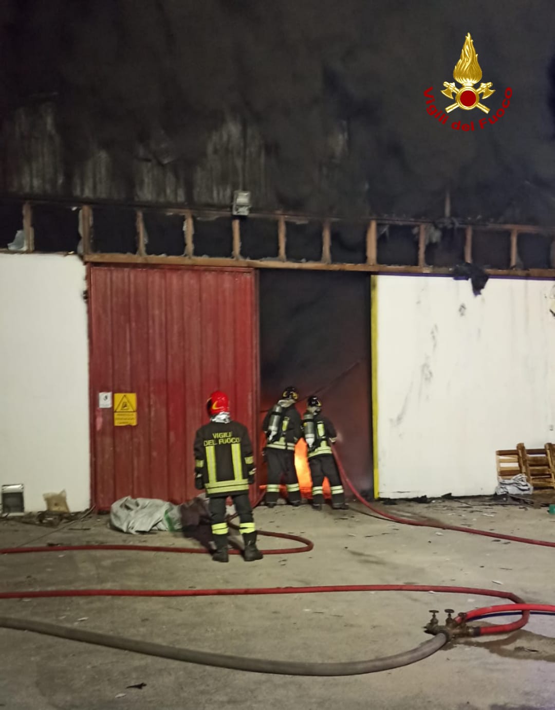 Capannone in fiamme in piena notte sulla Pontina. Intervengono vigili del fuoco e Polizia. -