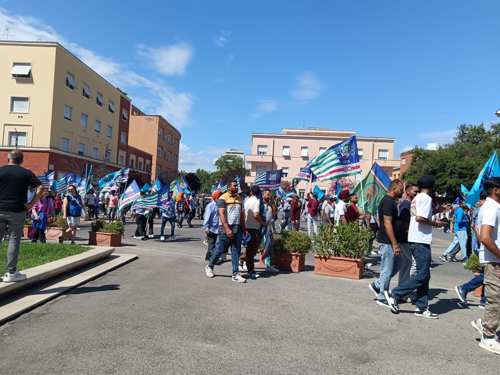 Oggi pomeriggio il centro Latina si è trasformato in una grande piazza che ha ospitatomigliaia di persone giunte dall’intera provincia ed oltre, per partecipare alla manifestazione contro il caporalato e le morti sul lavoro. Una manifestazione che è stata promossa dalla comunità indiana pontina e del Lazio, con il sostegno di Fai Cisl e la Uila Uil, dopo l’incidente costato la vita al connazionale Satnam Singh.