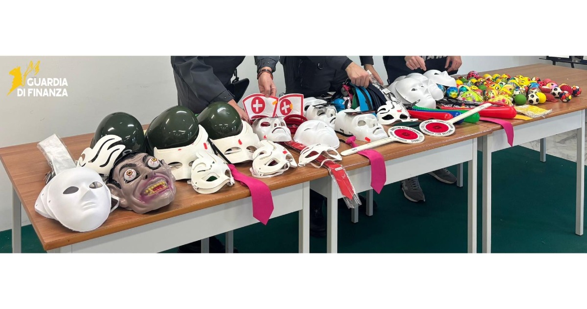 All’esito delle ispezioni condotte, avvalorando gli alert di rischio emersi, sono stati individuati e sequestrati presso un “emporio”, gestito da un cittadino di origine sinica, oltre 250 articoli carnevaleschi, tra cui machere, decorazioni, giochi e oggettistica di vario genere.
