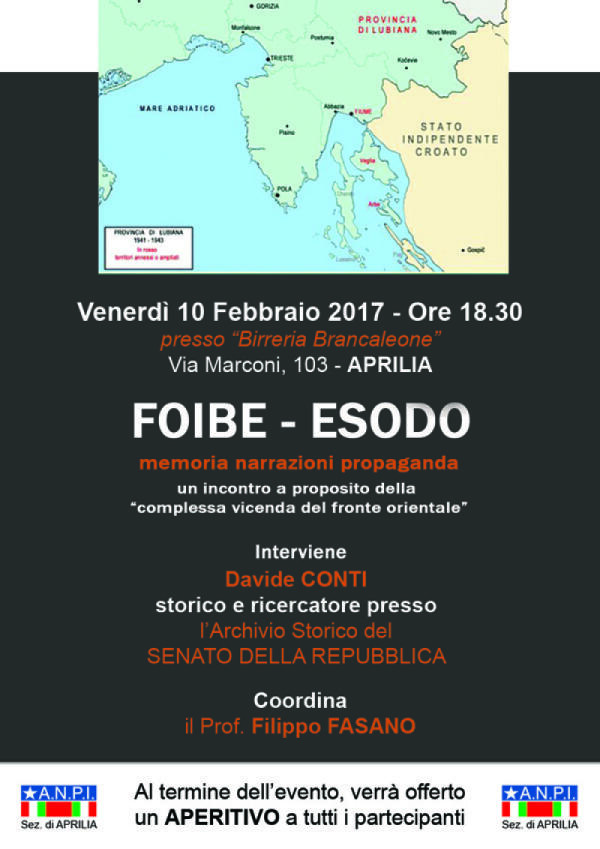 Giorno del Ricordo: incontro dell'Anpi di Aprilia con lo storico e ricercatore Davide Conti.