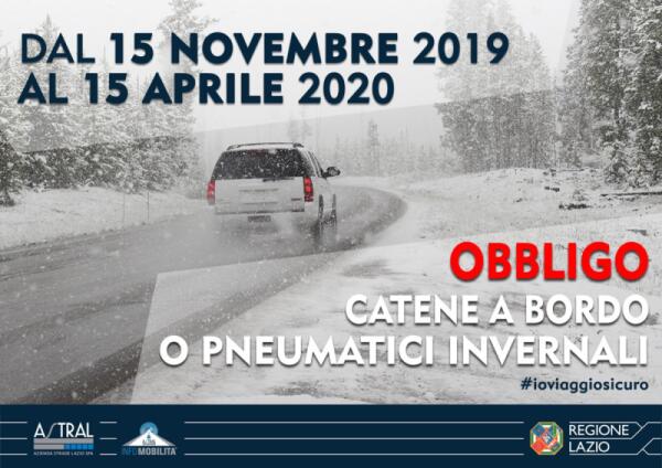 Da oggi e sino al prossimo 15 Aprile in vigore anche nel Lazio l’obbligo di catene a bordo. Ecco tutte le strade interessate.
