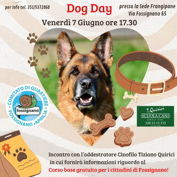 “Dog Day” questo venerdì 7 giugno al quartiere Fossignano di Aprilia.