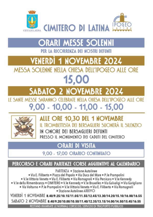 Tutti i Santi e Commemorazione dei Defunti, a Latina orari di apertura dedicati al Cimitero e corse del trasporto pubblico aggiuntive.