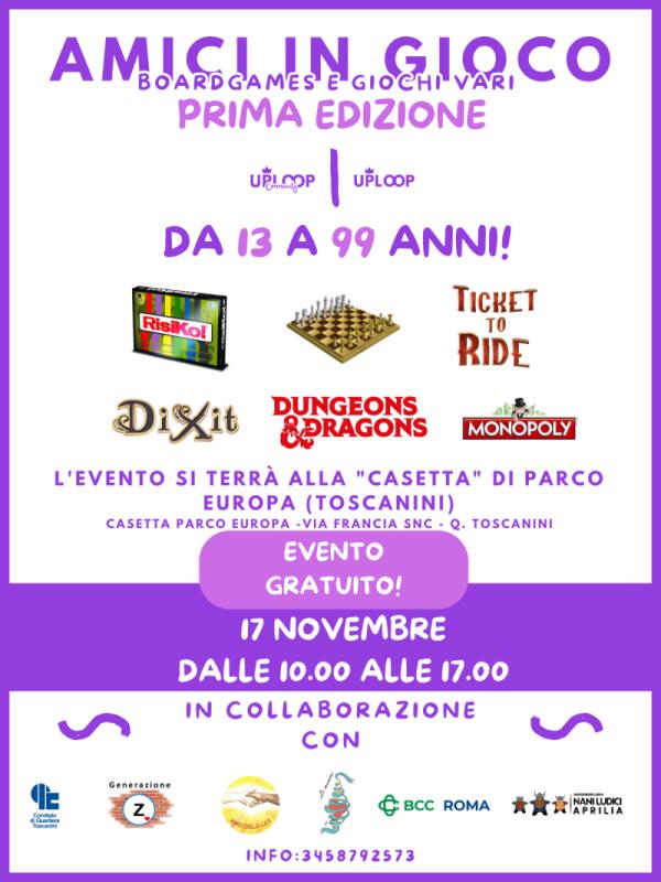 Aprilia - "Amici in Gioco", l'evento dai 13 ai 99 anni domenica 17 novembre