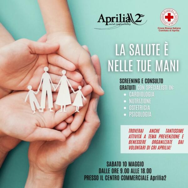 Ad Aprilia2 questo sabato 10 maggio l’evento “La salute è nelle tue mani”.
