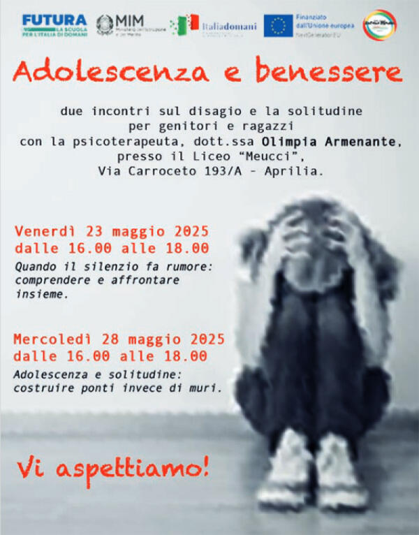 APRILIA - “Adolescenza e benessere: come affrontare il disagio e la solitudine”. Al liceo “Meucci” due incontri con una psicoterapeuta.