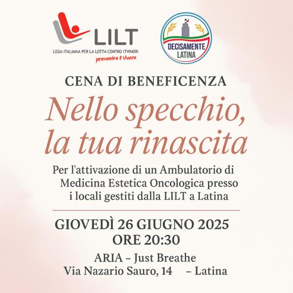 “Nello specchio, la tua rinascita”: cena di beneficenza a Latina con la LILT