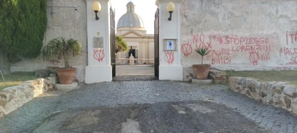 Vandali al cimitero di Anzio, operai già al lavoro per ripulire