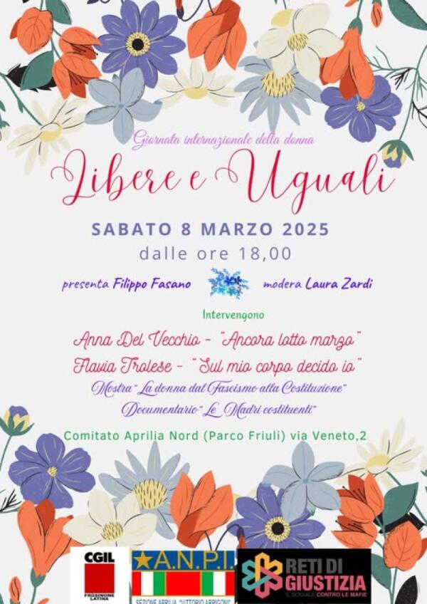 Libere e Uguali, 8 marzo 2025. Ad Aprilia un incontro per riflettere