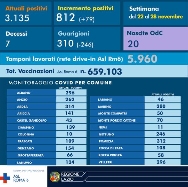 Asl Roma 6, nell'ultima settimana tornano a salire i casi covid. Sette i decessi