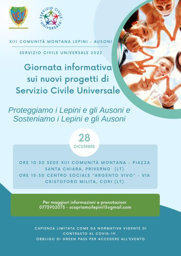 XIII Comunità Montana, giornata informativa per i nuovi progetti di Servizio Civile Universale